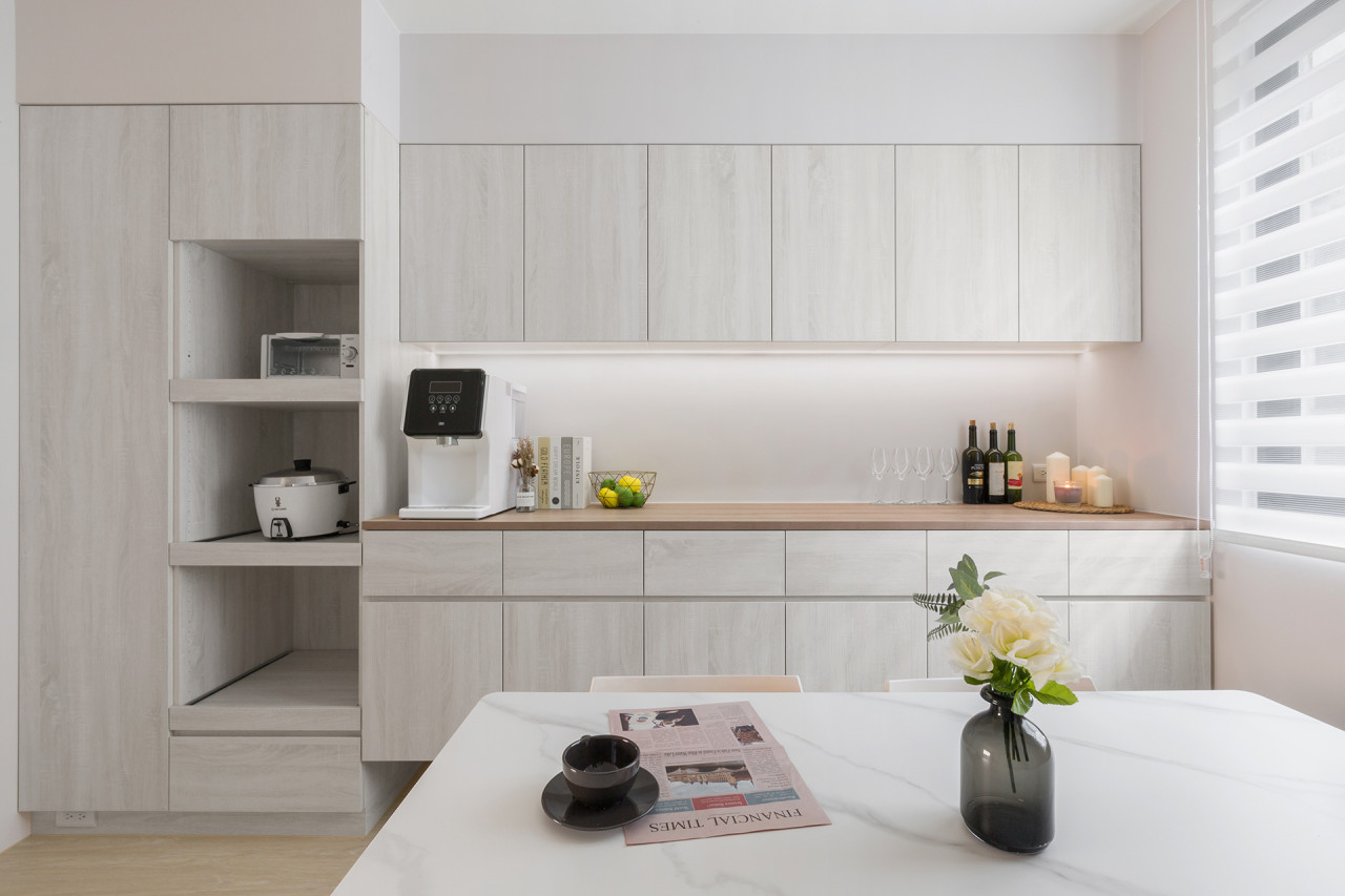 桃園文光街 侯宅 法式元素搭配奶茶色調,營造層次感和溫馨氛圍,仿若沐浴在柔和陽光中。客製化設計打造獨一無二的浪漫奶茶風溫馨宅,每件傢俱融入整體風格。陽光灑落美景,暖白色調與木質色實現願望,綠植點綴悠閒氛圍,微光明亮精緻,展望幸福未來。感受設計初衷,捨去繁華點綴呈現簡約中的低調美
